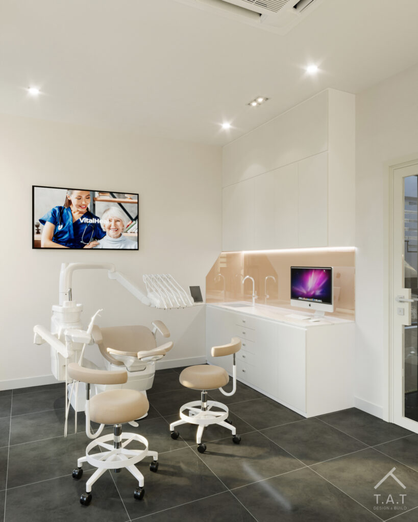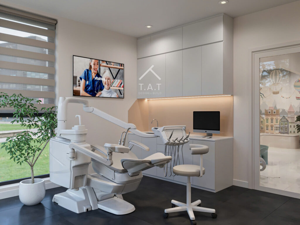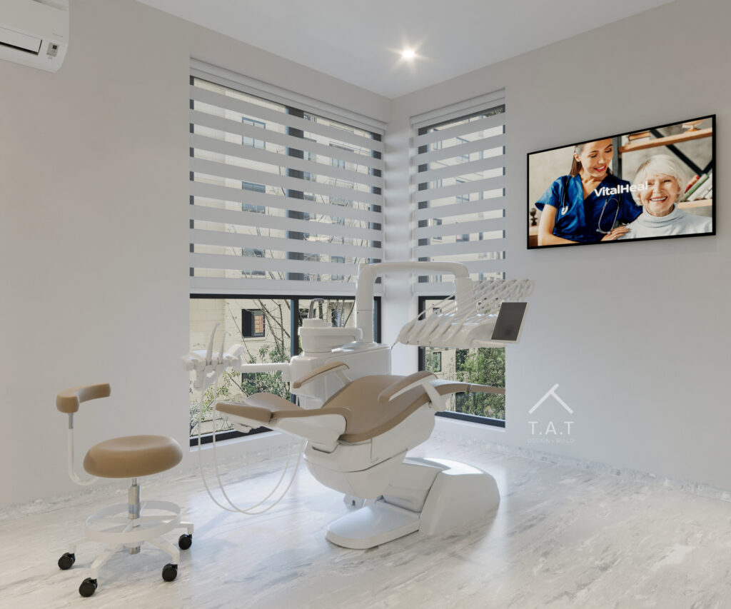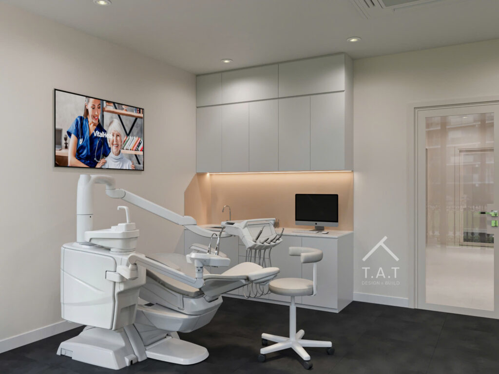 Các chi tiết nội thất được tiết chế, tập trung vào đường nét gọn gàng và vật liệu bền vững, phù hợp với môi trường dịch vụ y tế.
