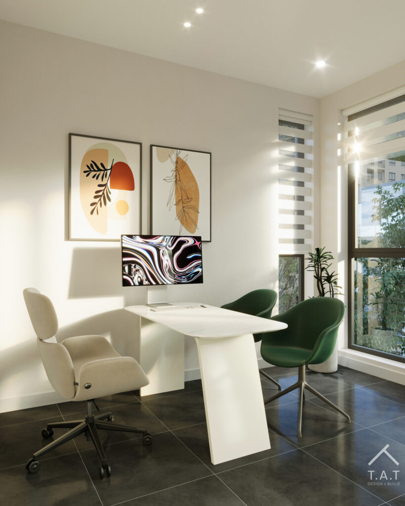 Sự kết hợp giữa mảng xanh, ánh sáng và vật liệu trung tính giúp cân bằng cảm xúc, khiến người sử dụng cảm thấy an tâm và thư giãn hơn ngay từ thời điểm đầu tiên bước vào.