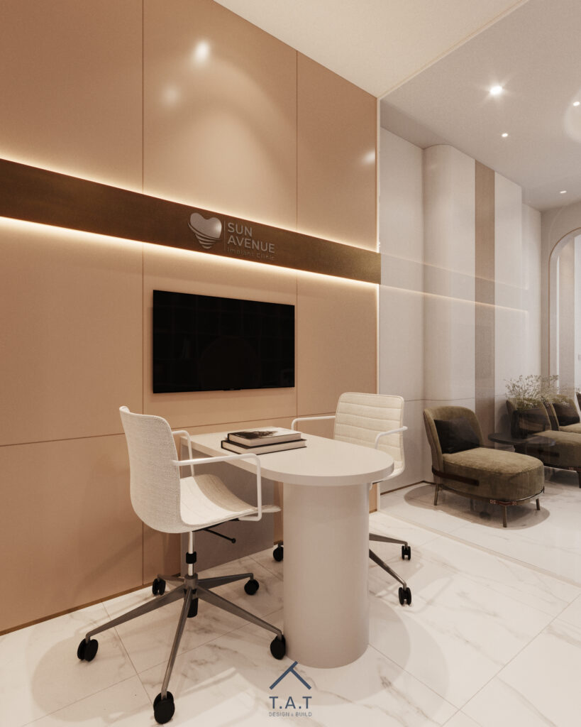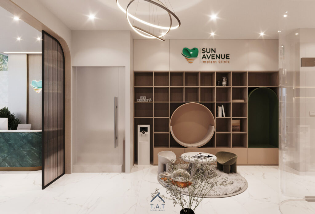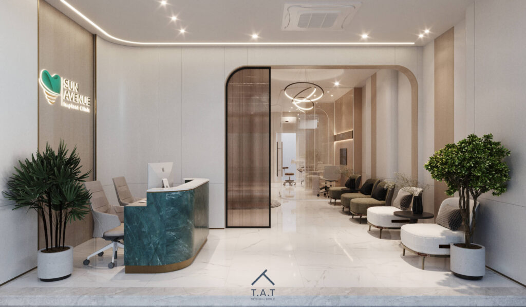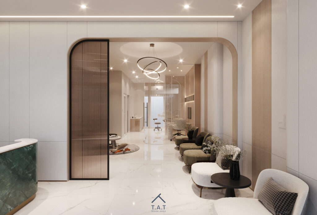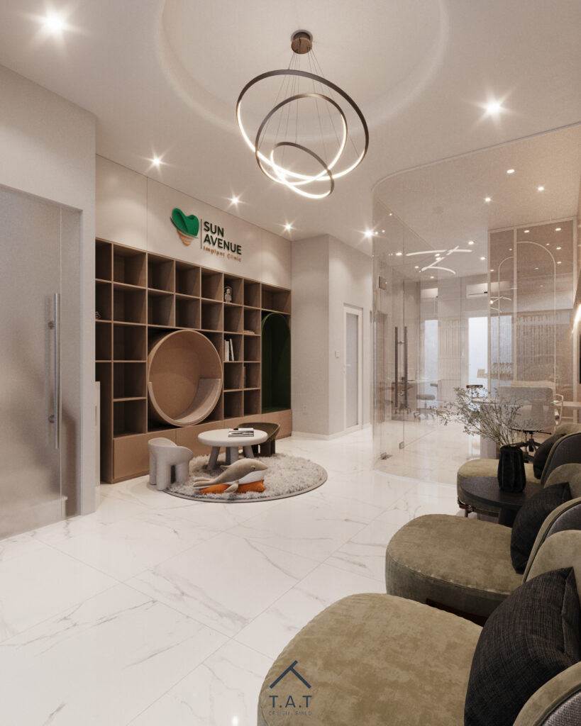 Một sảnh chờ nha khoa mang phong cách hiện đại – tối giản nhưng vẫn tạo cảm giác ấm áp và dễ chịu ngay từ ánh nhìn đầu tiên.