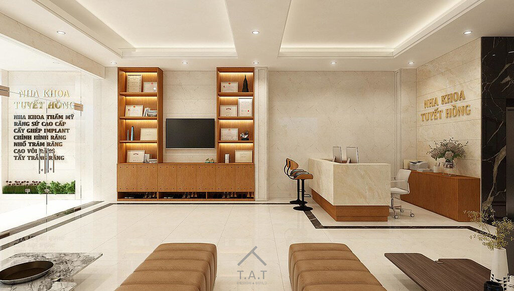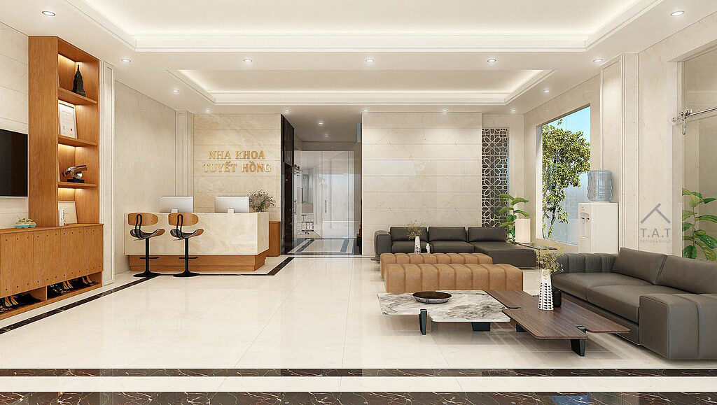 Thiết kế của Nha khoa Tuyết Hồng (Biên Hòa) mang đậm ngôn ngữ Modern Professional (Hiện đại chuyên nghiệp) với mục tiêu trọng tâm là tạo ra sự an tâm và trải nghiệm cao cấp cho khách hàng.