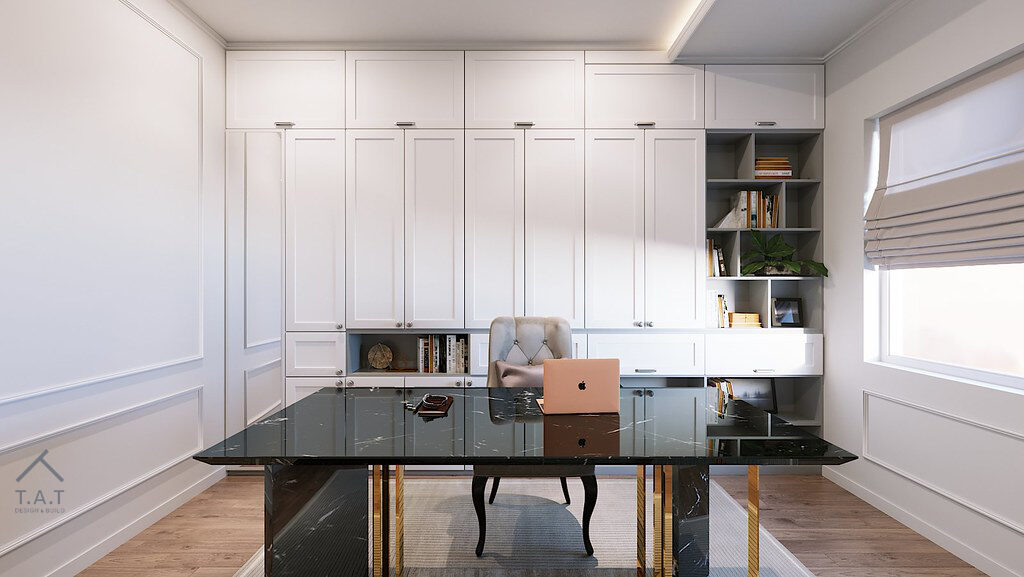 Không gian kế tiếp cũng khá yên tình và chỉn chu, đó là không gian làm việc,