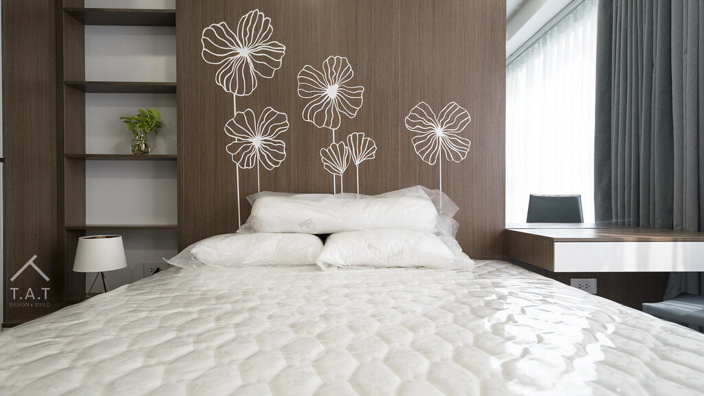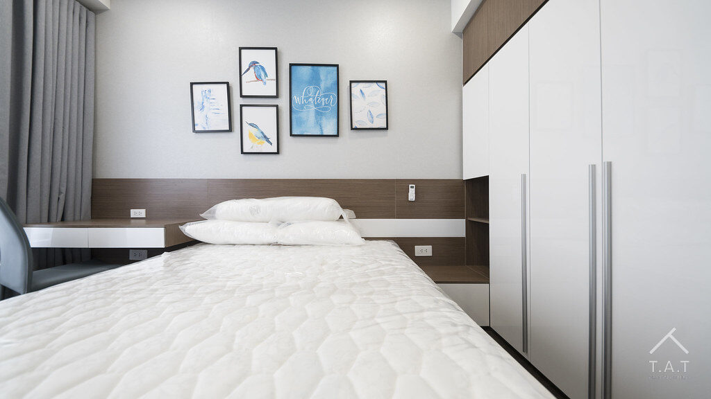 Mọi chi tiết trong căn phòng đều được giản lược hóa để nhường chỗ cho sự nghỉ ngơi, tạo nên một “trạm sạc năng lượng” hoàn hảo sau những giờ làm việc căng thẳng.