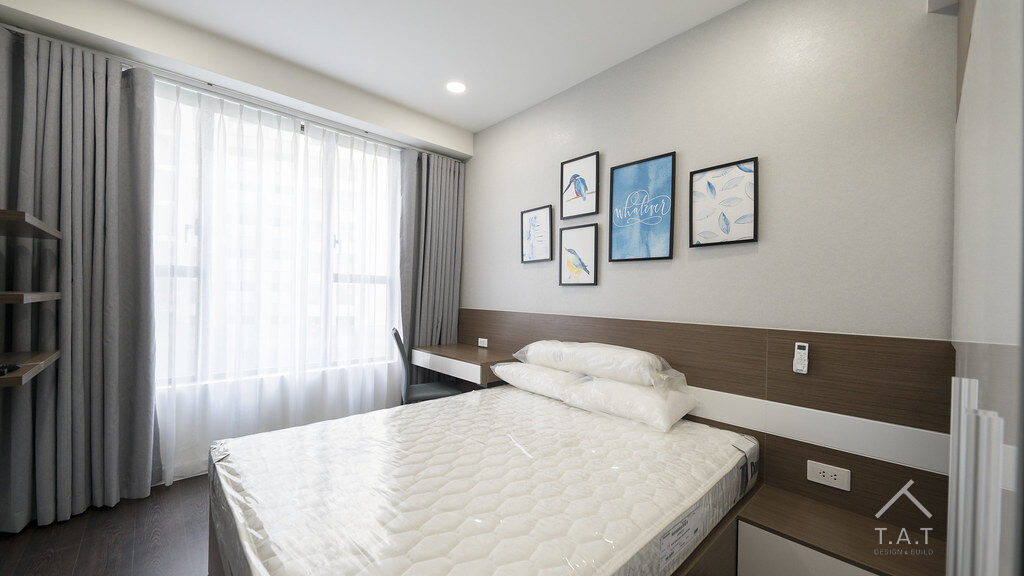 Tiếp nối mạch cảm xúc nhẹ nhàng của cả căn hộ, phòng ngủ thứ 2 hiện lên như một nốt trầm xao xuyến, nơi sự tối giản và tính ứng dụng được đặt lên hàng đầu nhưng vẫn không thiếu đi những điểm chạm nghệ thuật đầy thi vị.