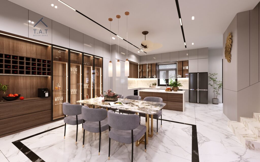 Khu bếp – ăn này là hình mẫu lý tưởng cho một lối sống hiện đại, đề cao sự hưởng thụ và tính thẩm mỹ khắt khe. Nó là sự kết hợp hoàn hảo giữa thẩm mỹ của một căn hộ cao cấp và sự tiện nghi của một mái ấm.