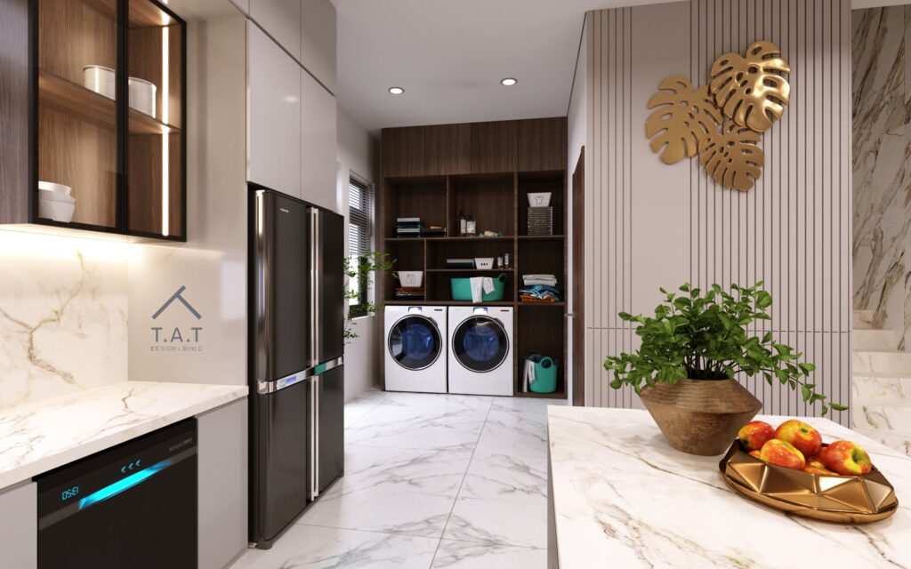 Bước sâu hơn vào trong phòng bếp, ngoài sự chỉn chu trong cách chọn vật liệu và đường nét cứng rắn và đầy thanh mảnh thì chúng ta thấy được mức độ tận dụng không gian đến tối đa để tối ưu hơn về diện tích sử dụng công năng.