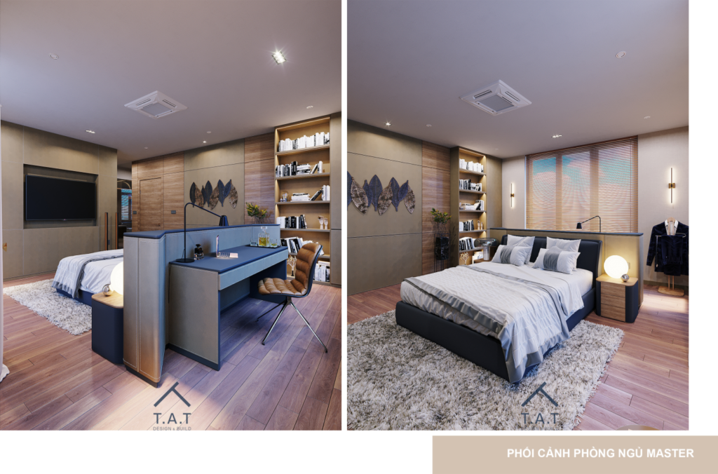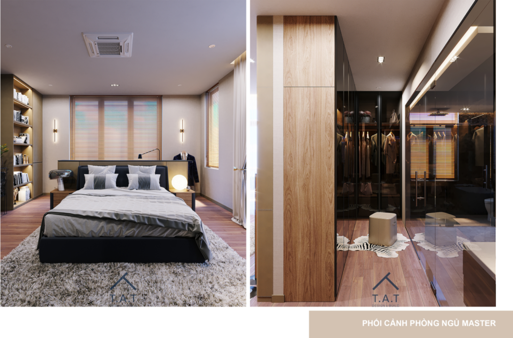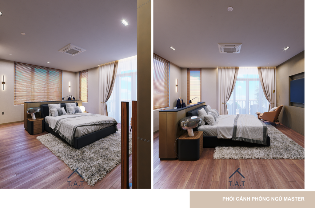 Phòng ngủ Master này là một bước chuyển mình về cảm xúc: riêng tư hơn, sâu lắng hơn nhưng vẫn giữ trọn mã gen Hiện đại – Sang trọng của toàn bộ căn nhà.