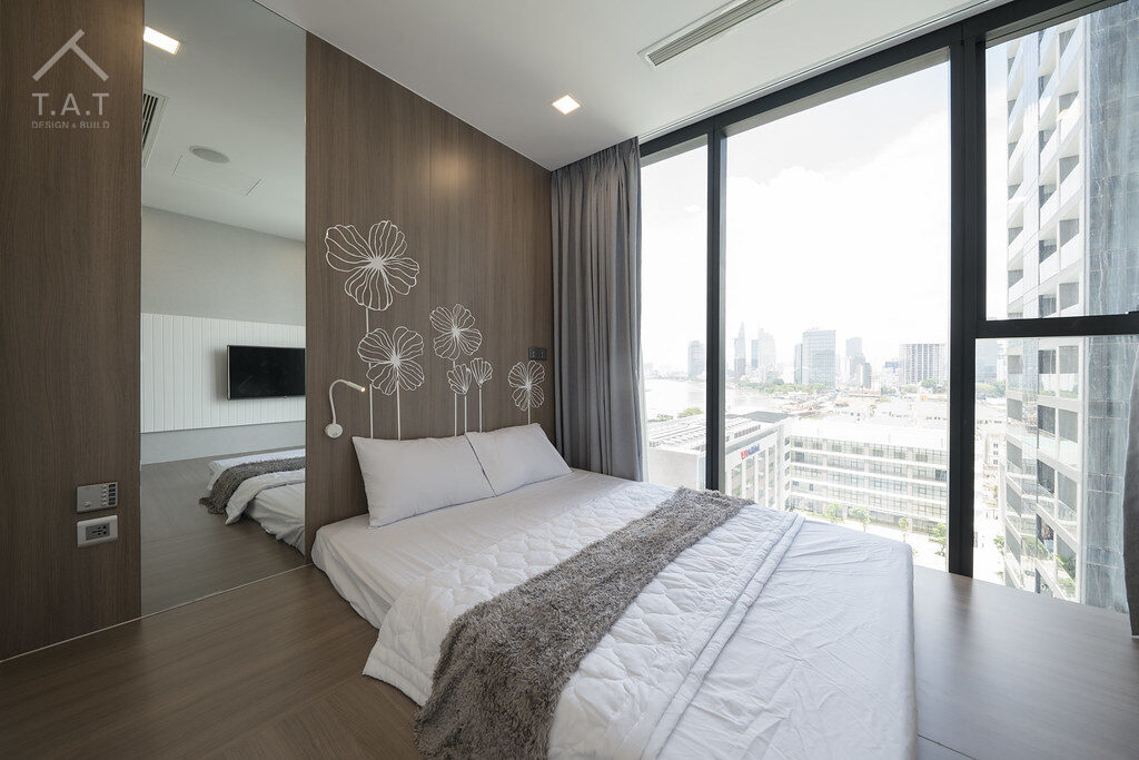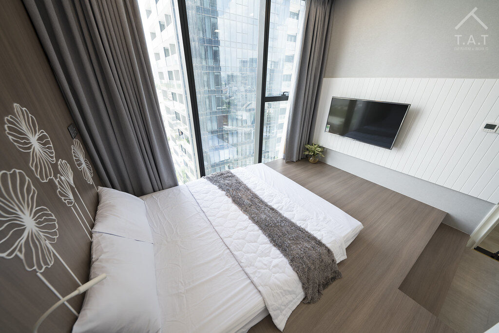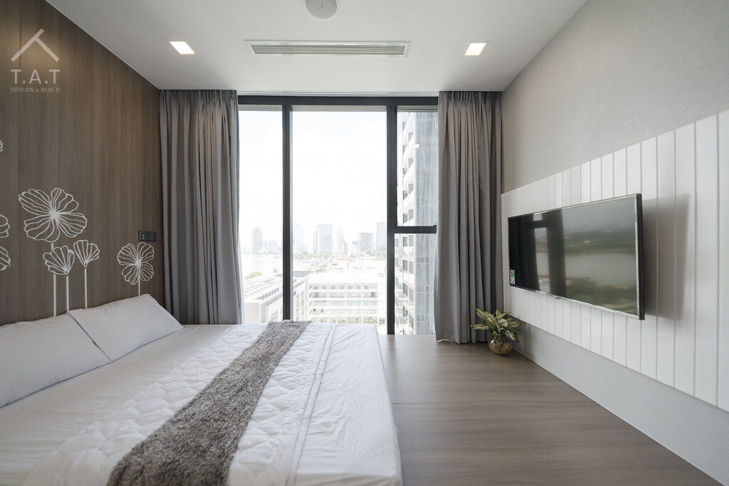 Tổng thể đem đến một không gian nghỉ ngơi gọn gàng, ấm cúng nhưng không kém phần sang trọng. Việc sử dụng quá ít đồ nội thất rời (loose furniture) giúp căn phòng luôn giữ được sự ngăn nắp và thoáng đạt.