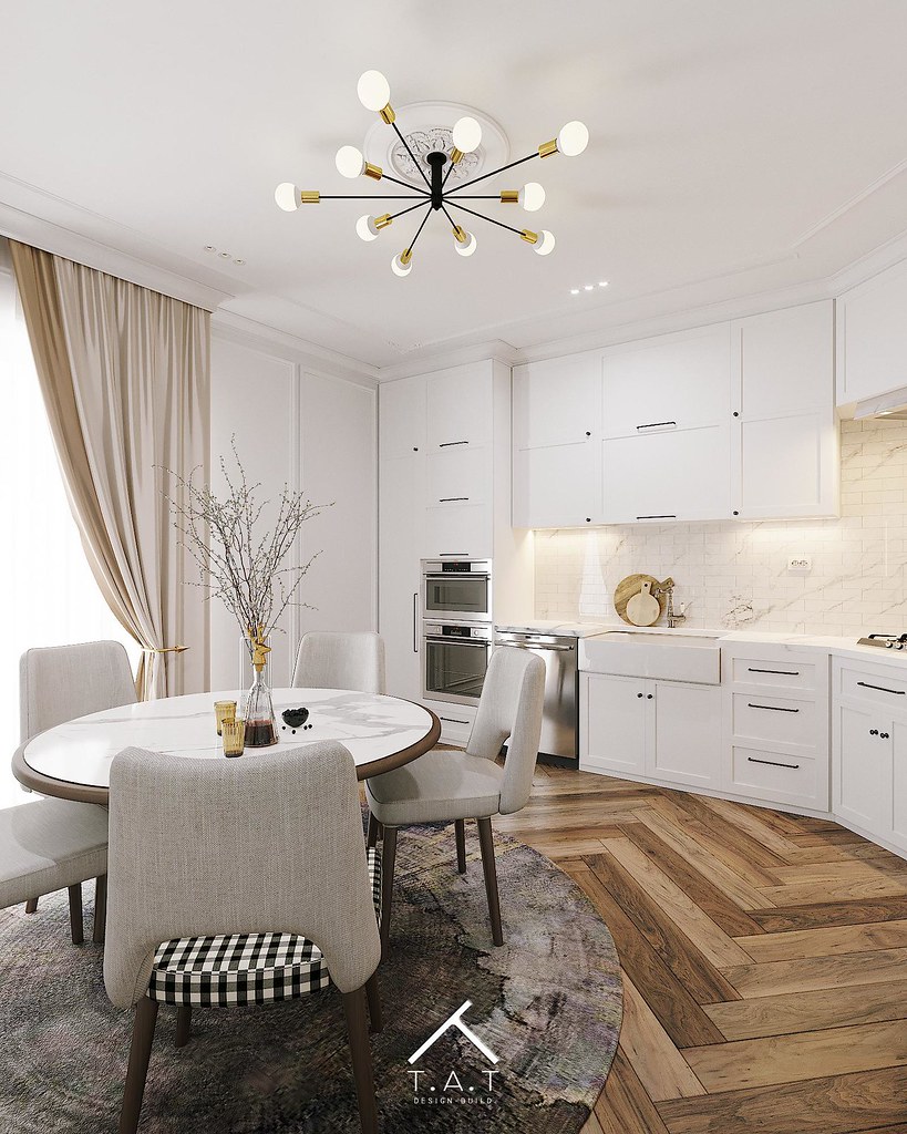 Mang phong cách modern farmhouse pha chút transitional (chuyển tiếp). Không gian này không còn sự hào nhoáng, góc cạnh mà thay vào đó là sự thanh lịch, mộc mạc và vô cùng thoáng đạt.