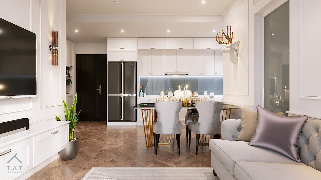 Một bản giao hưởng nhẹ nhàng của phong cách Tân cổ điển pha trộn với nét hiện đại, tối giản, tạo nên cảm giác sang trọng nhưng vẫn rất gần gũi và ấm cúng.
